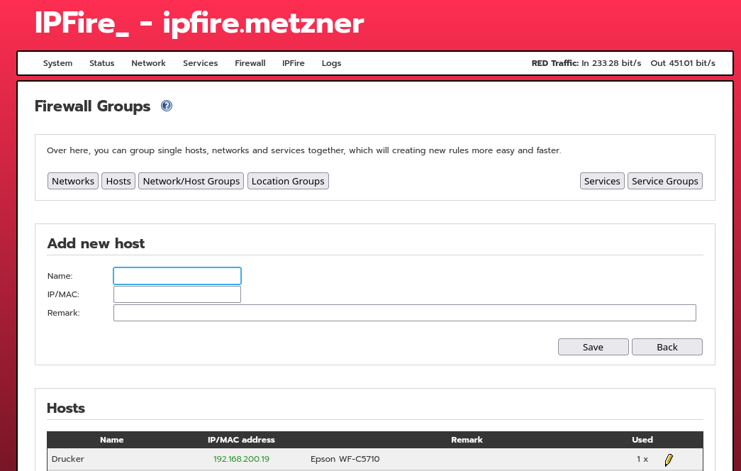 If for any reason you prefer a dynamic iP address configured on the printer, configure a reservation into DHCP server of your IPFire; it’s called “Fixed leases”. Keep tracking of reserved IP address and the macaddress