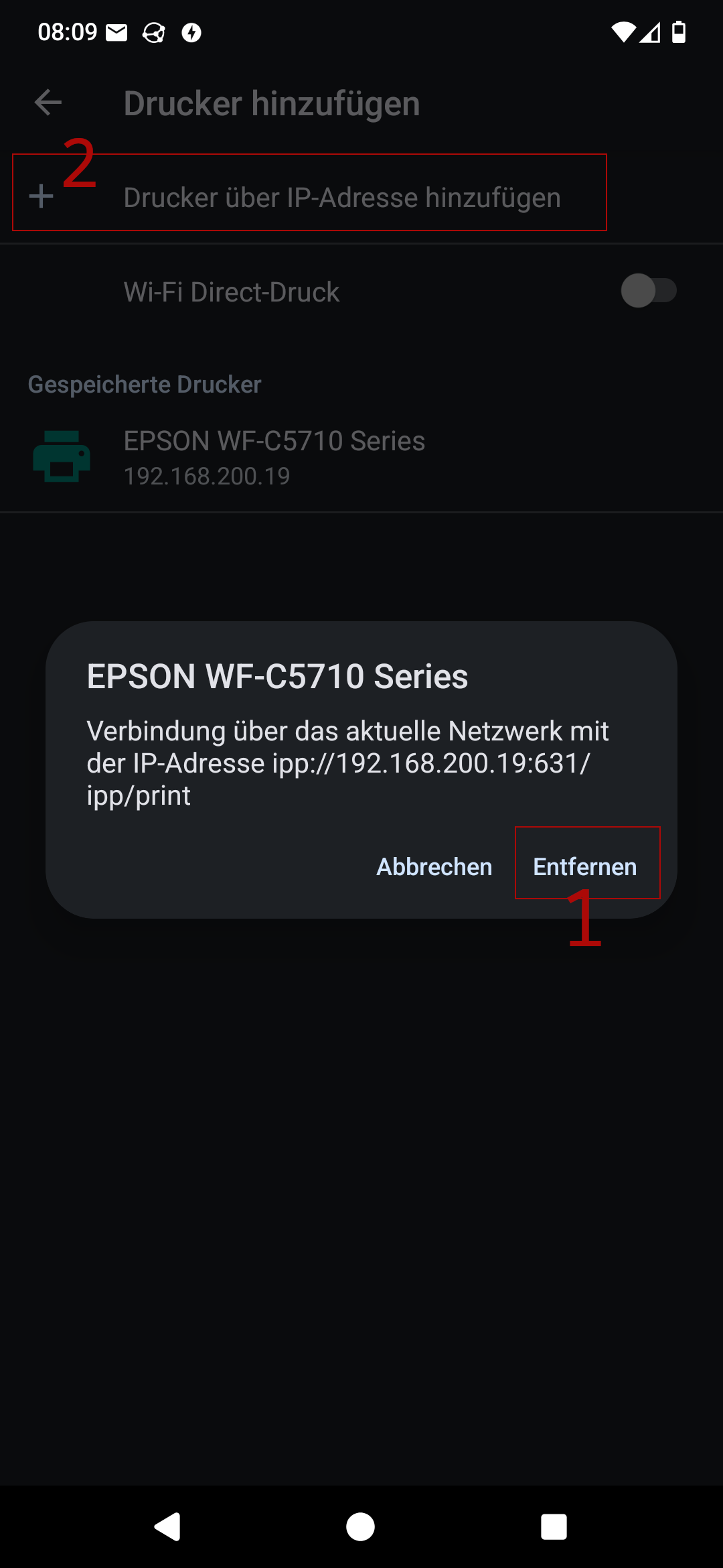 A completely different alternative is to activate WiFi Direct on the printer. Then I just have to go to the printer in the printer’s range.